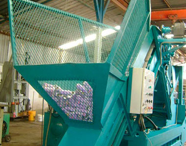 The direct loading is the process of cans without the need for pre-processes such as pre-pressing, The jam of cans is eliminated by the use of an agitator. The agitator rolls when the main cylinder is returning, the rotary agitator breaks the clog and forces the cans towards the compaction chamber. Bale size and density are determined by a specifically designed system consisting of only four sensors, or it can be changed by the optional dashboard. This system has been tested in dirty and harsh environments of recovery centers with very good results in its operation.