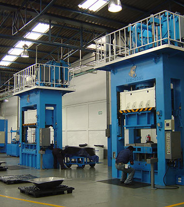 Communication with additional processes. Interfaces with programmable automata. Special controls Special dimensions up to 6 meters by 3 meters of table. Tons from 100 to 3000 Tons.