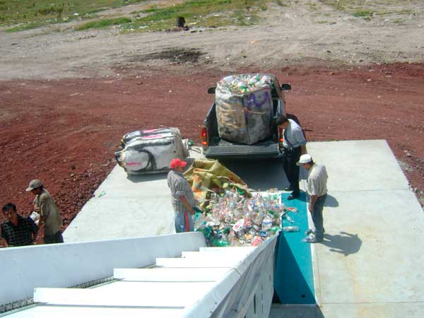 Las Bandas Ahuladas para Selección de Basura es la sección en donde el personal encargado de la separación de los materiales reciclables realiza su trabajo. Dependiendo la cantidad de basura y el modelo seleccionado, el personal descarga el material a través de ductos sobre contenedores plásticos, supersacos, silos o directamente sobre otra banda ahulada para posteriormente compactarla y hacer pacas de material reciclado.