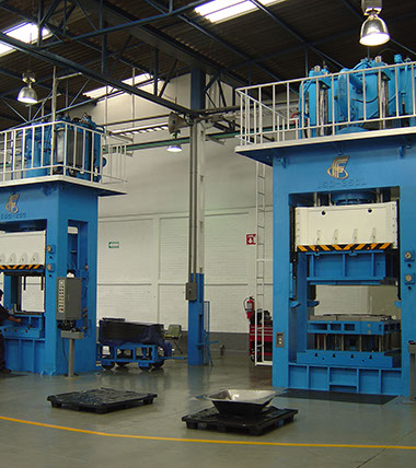 Este tipo de prensas fabricadas por Fluidica, tiene un diseño que las hace especiales para embutido, estampado y punzonado de gran precisión, estas máquinas pueden soportar procesos rudos que no pueden ser hechos mecánicamente. La alta precisión en el grabado la hacen segura y confiable.