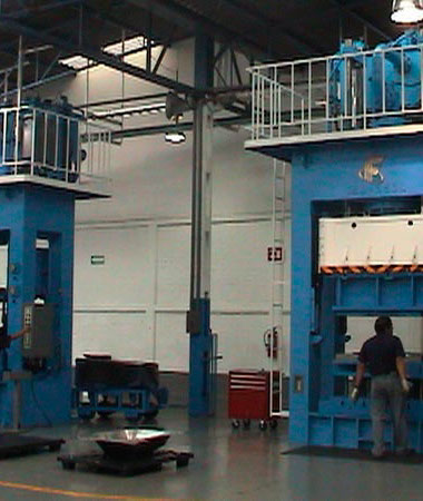 Comunicación con procesos adicionales. Interfaces con autómatas programables. Controles especiales. Dimensiones especiales hasta 6 metros por 3 metros de mesa. Tonelajes de 100 a 3000 Toneladas.