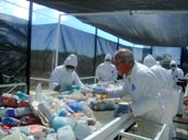 Las Bandas Ahuladas para Selección de Basura es la sección en donde el personal encargado de la separación de los materiales reciclables realiza su trabajo. Dependiendo la cantidad de basura y el modelo seleccionado, el personal descarga el material a través de ductos sobre contenedores plásticos, supersacos, silos o directamente sobre otra banda ahulada para posteriormente compactarla y hacer pacas de material reciclado.